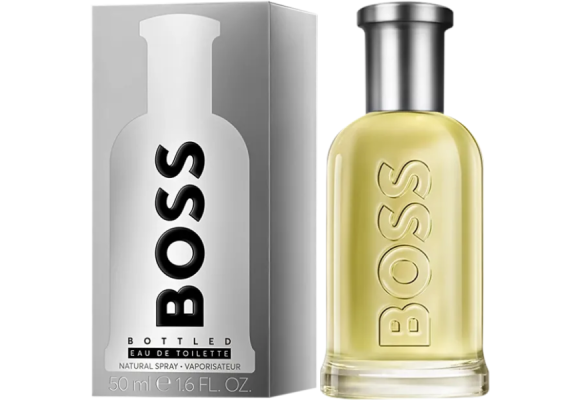 Boss Bottled Eau de Toilette da Grife Hugo Boss, família olfativa Amadeirado Especiado, perfume masculino espanhol lançado em 1998.