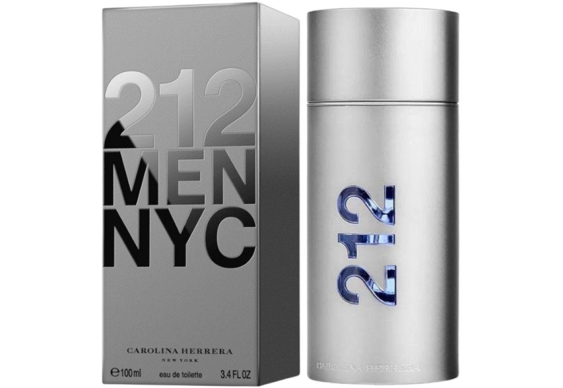 212 Men Eau de Toilette da grife Carolina Herrera, família olfativa amadeirado, perfume masculino espanhol lançado em 1999.