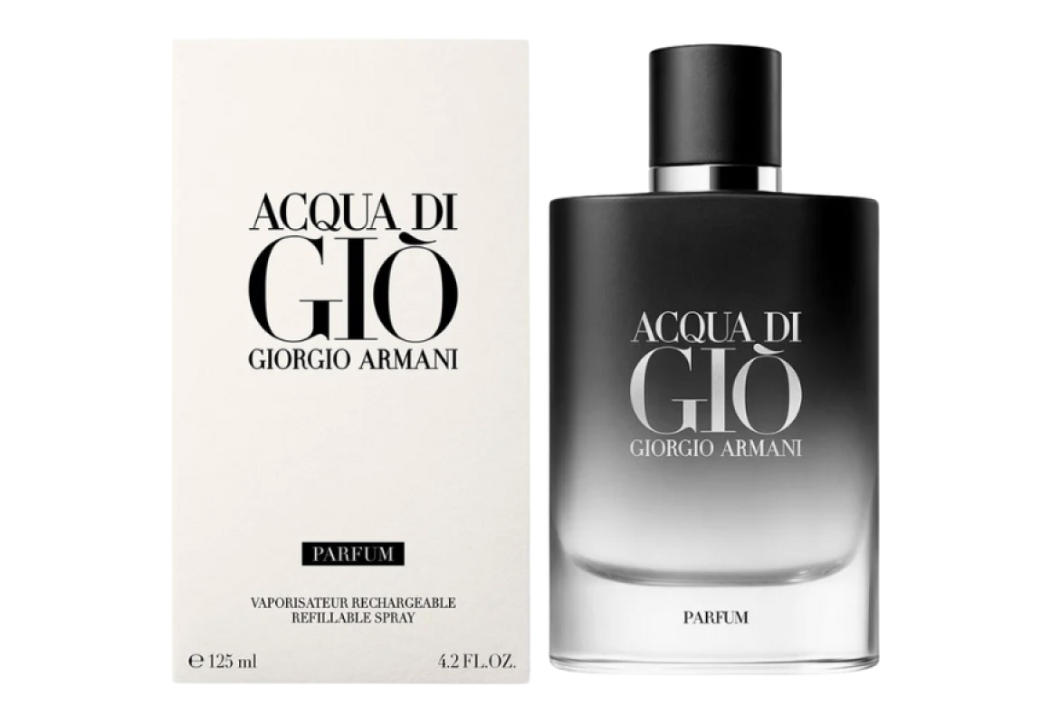 Aqua Di Gio Pour Homme Parfum da grife Giorgio Armani, família olfativa aquático amadeirado, perfume masculino francês lançado em 2023.