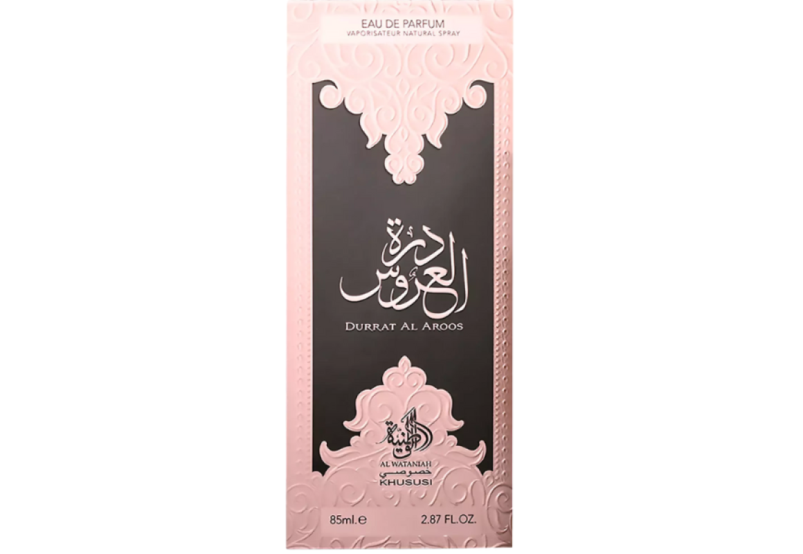 Durrat Al Aroos Eau de Parfum da grife Al Wataniah, família olfativa oriental, perfume feminino dos Emirados Árabes Unidos lançado em 2022.