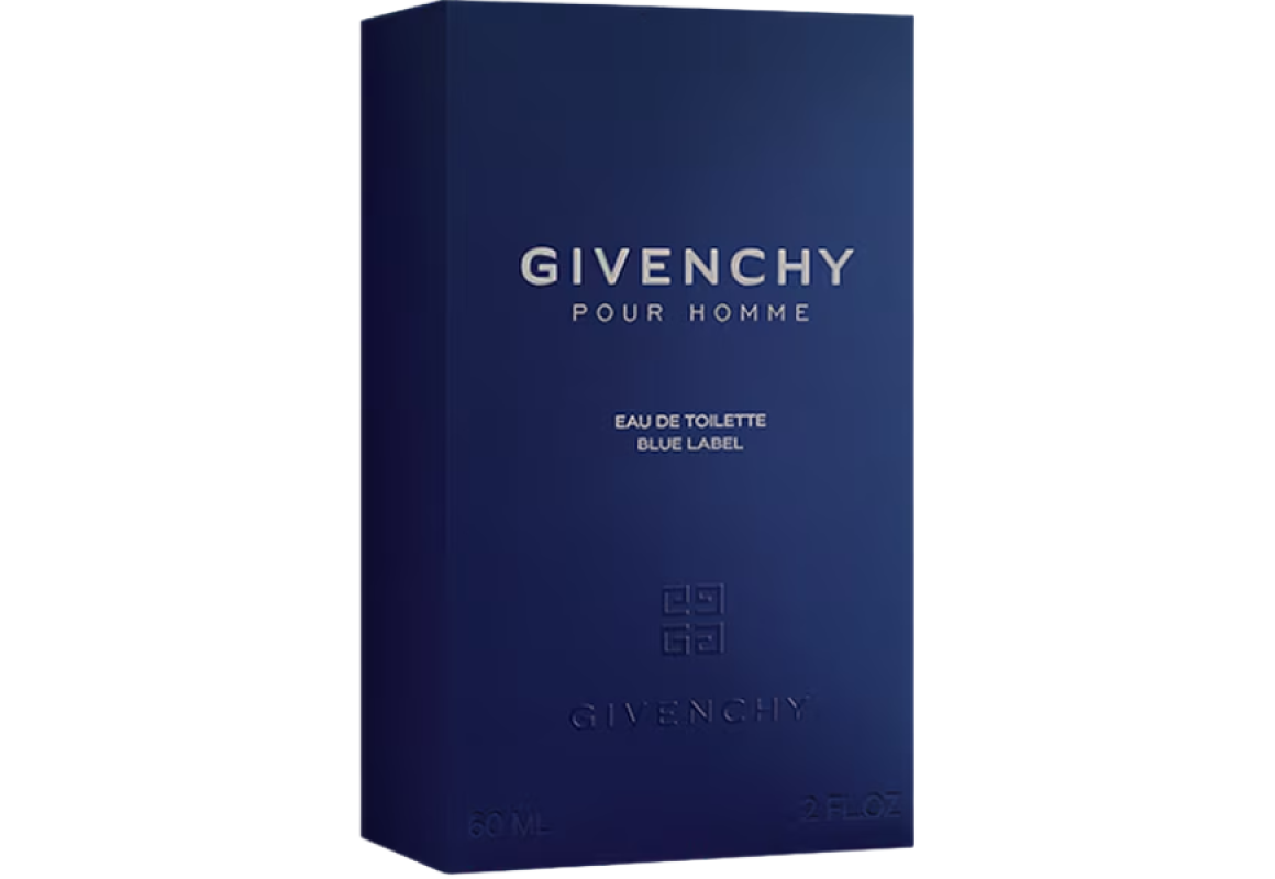Blue Label Eau de Toilette da grife Givenchy, família olfativa amadeirado especiado, perfume masculino francês lançado em 2004.