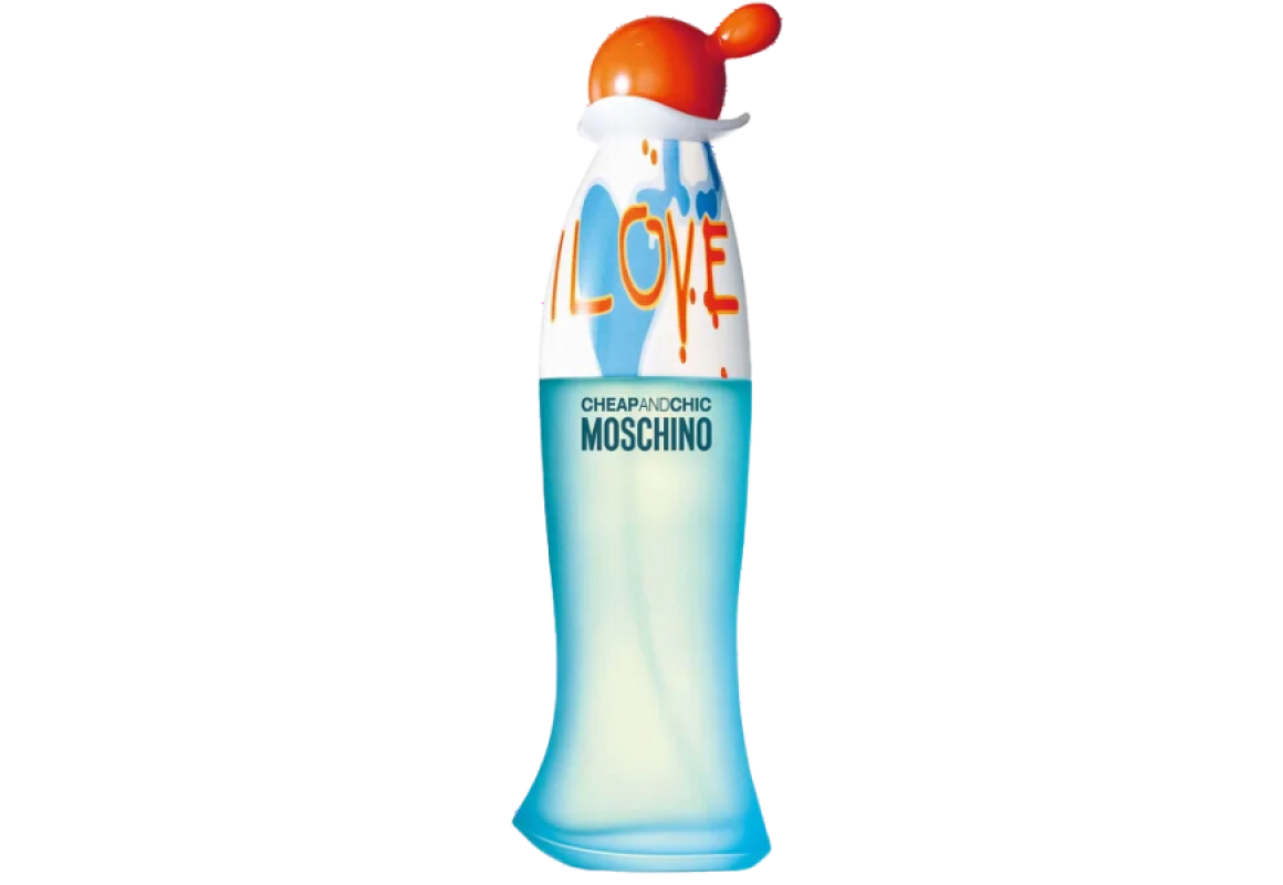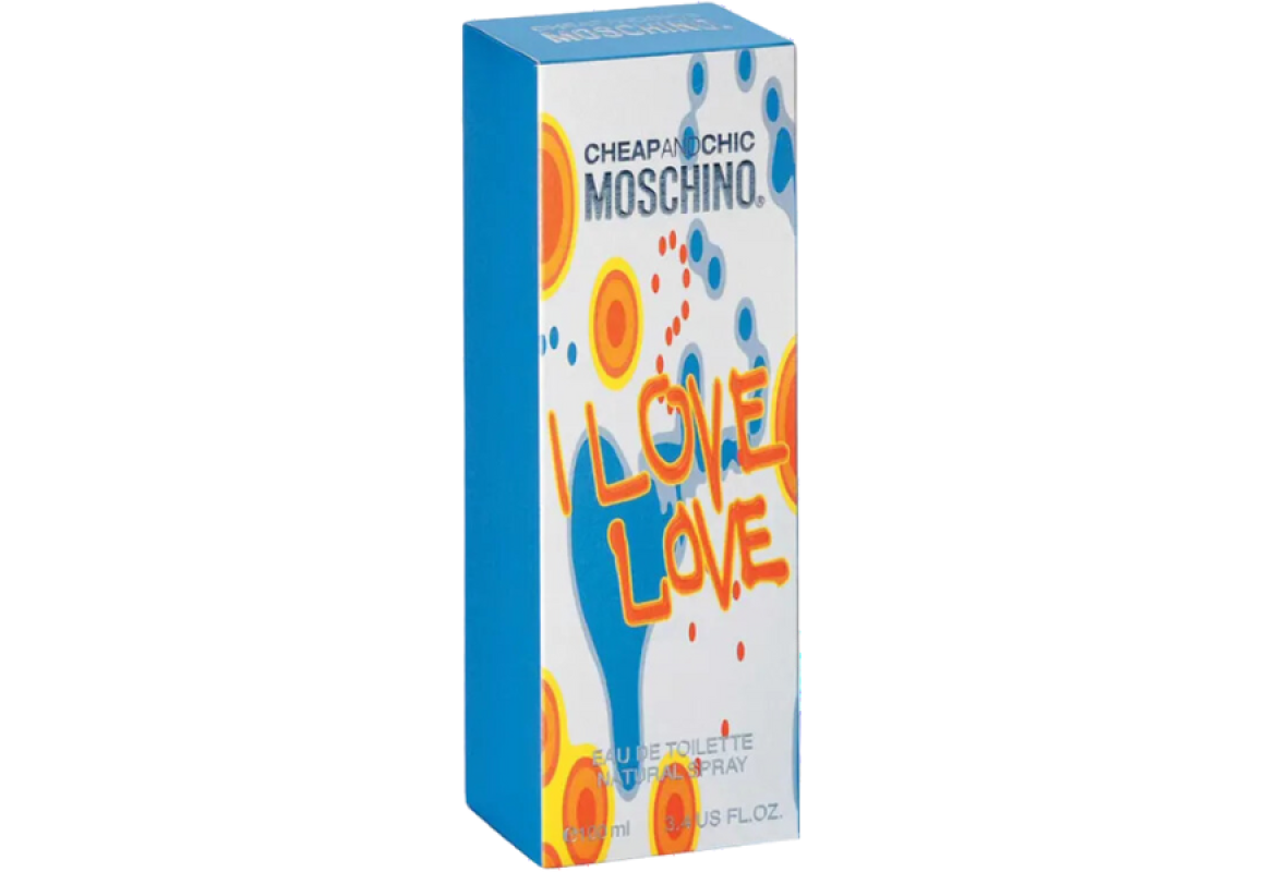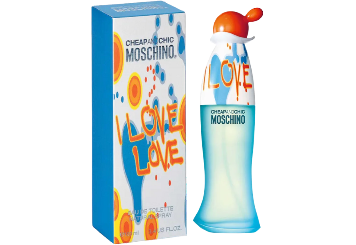 I Love Love Eau de Toilette da grife Moschino, família olfativa floral amadeirado almiscarado, perfume feminino italiano lançado em 2004.