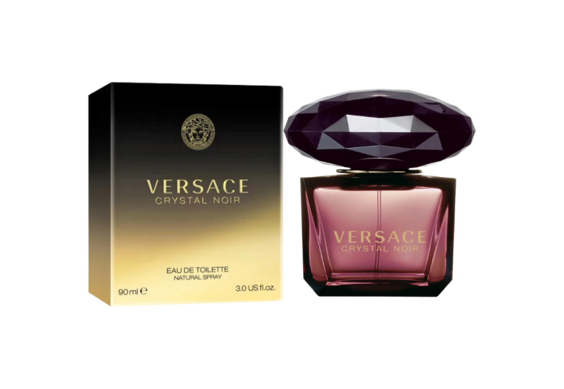 Crystal Noir Eau de Toilette da grife Versace, família olfativa floral, perfume feminino italiano lançado em 2004.