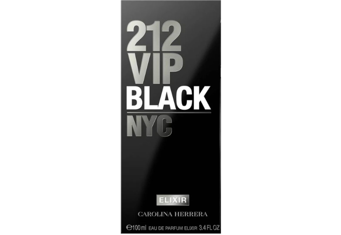 212 Vip Black Elixir Nyc Eau de Parfum da grife Carolina Herrera, família olfativa oriental fougère, perfume masculino espanhol lançado em 2025.