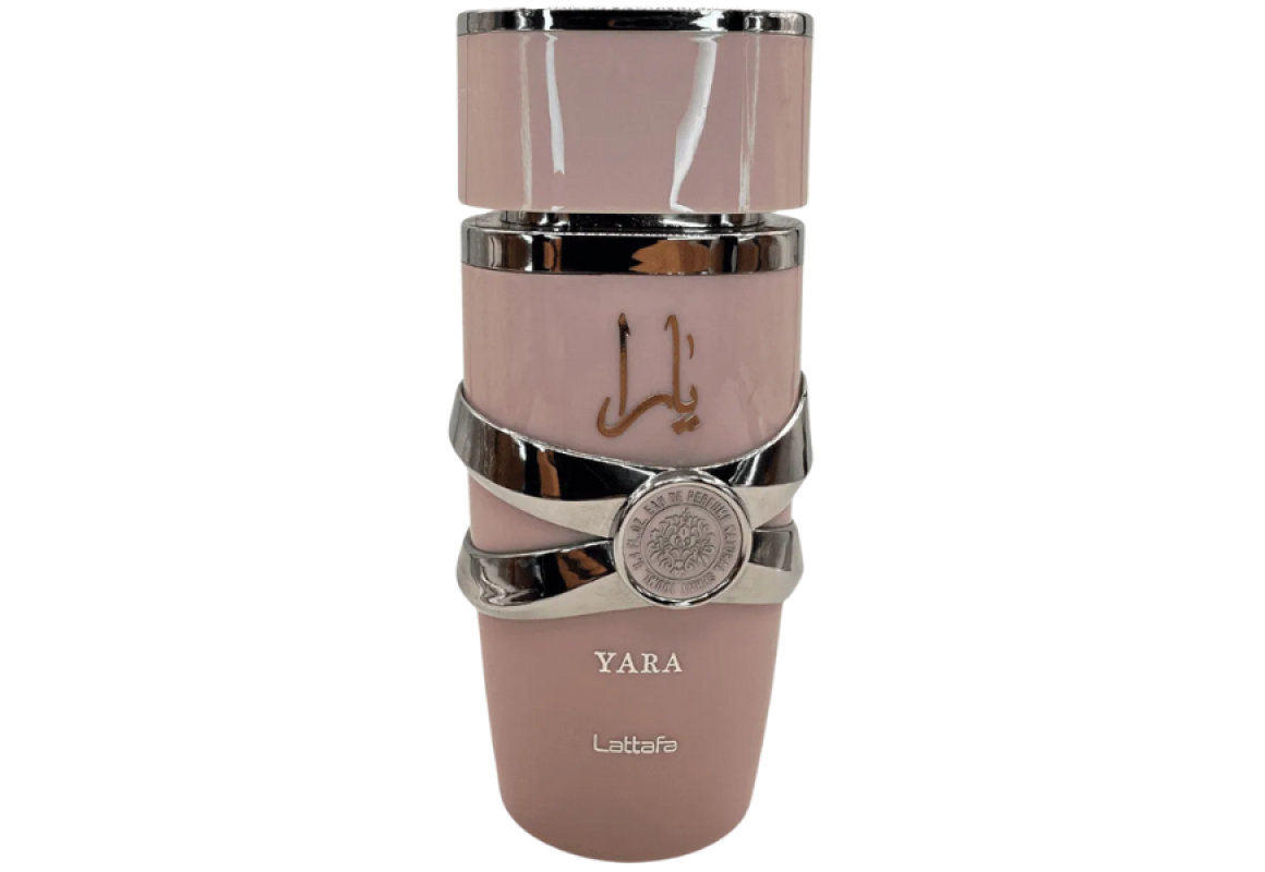 Yara Eau de Parfum da grife Lattafa, família olfativa oriental baunilha, perfume feminino dos Emirados Árabes Unidos lançado em 2020.