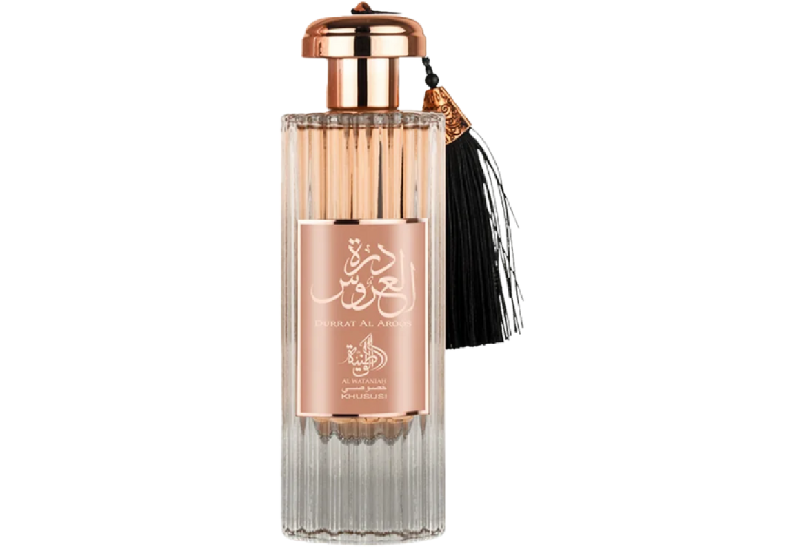Durrat Al Aroos Eau de Parfum da grife Al Wataniah, família olfativa oriental, perfume feminino dos Emirados Árabes Unidos lançado em 2022.
